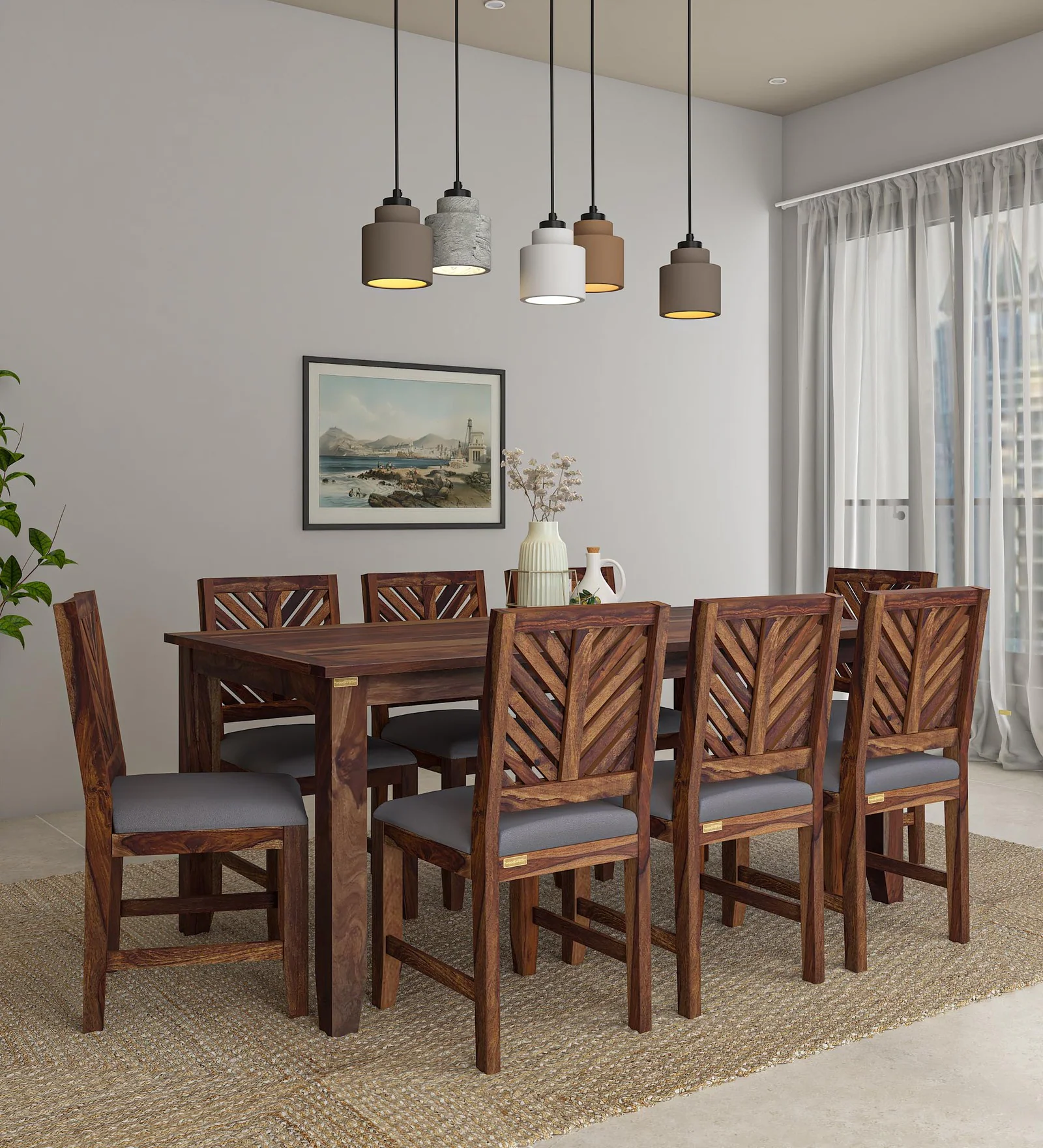 Tourconing Sheesham Wood 8 Seater Dining Set In Rustic Teak Finish